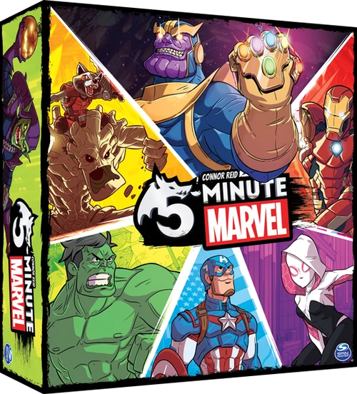 The Marvel version of the chaotically fast-paced cooperative card game 5-Minute Dungeon that lets my group of Marvel heroes battle past Marvel bosses all in less than 5 minutes! Fast and frenetic gameplay gets everyone involved and engaged. Cooperative gameplay encourages communication, interpersonal interaction, and teamwork. 10 Marvel heroes to choose from and 5 progressively difficult Marvel bosses delivers strong re-playability.