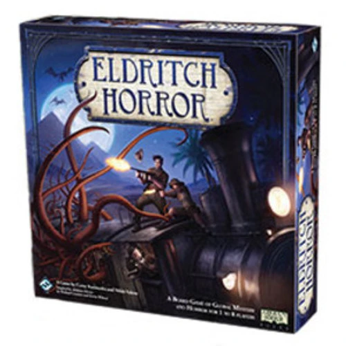 Across the globe, ancient evil is stirring. Now, you and your trusted circle of colleagues must travel around the world, working against all odds to hold back the approaching horror. Foul monsters, brutal encounters, and obscure mysteries will take you to your limit and beyond. All the while, you and your fellow investigators must unravel the otherworldy mysteries scattered around the globe in order to push back the gathering mayhem that threatens to overwhelm humanity. The end draws near! Do you have the courage to prevent global destruction? Eldritch Horror is a cooperative game of terror and adventure in which one to eight players take the roles of globetrotting investigators working to solve mysteries, gather clues, and protect the world from an Ancient One – an elder being intent on destroying our world. Each Ancient One comes with its own unique decks of Mystery and Research cards, which draw you deeper into the lore surrounding each loathsome creature. Discover the true name of Azathoth or battle Cthulhu on the high seas. With twelve unique investigators, two hundred-fifty tokens, and over three hundred cards, Eldritch Horror presents an epic, world-spanning adventure with each and every game.