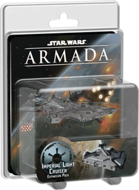 As seen in the Star Wars Rebels television show, the Imperial light cruiser is a communications and blockade ship used to help the Empire spread its domain throughout the galaxy. In Star Wars: Armada, the Imperial Light Cruiser Expansion Pack presents this ship as a fast, small-base Imperial vessel that excels at providing long-range fire support from its broadsides. With its ship, its two ship cards, eight upgrades, and all requisite accessories, the Imperial Light Cruiser Expansion Pack will have you racing around the Rebels’ flanks and into a new era for Imperial tactics!