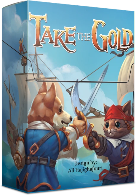 Take the Gold is a 2-6 player draw-and-play light bluffing card game that can be learned in under two minutes. Players try to be the first to collect four gold coins by using pirates to steal coins from other players. Officers can be called in to stop the pirates, but be prepared for The Kraken who could wipe out everything they have! Games are quick paced and play in less than ten minutes.